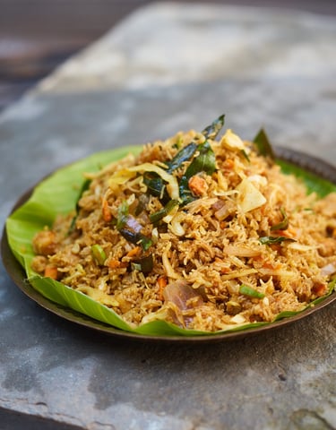 A flavorful South Indian delight featuring shredded idiyappam and mixed vegetables, perfect for a delightful meal.